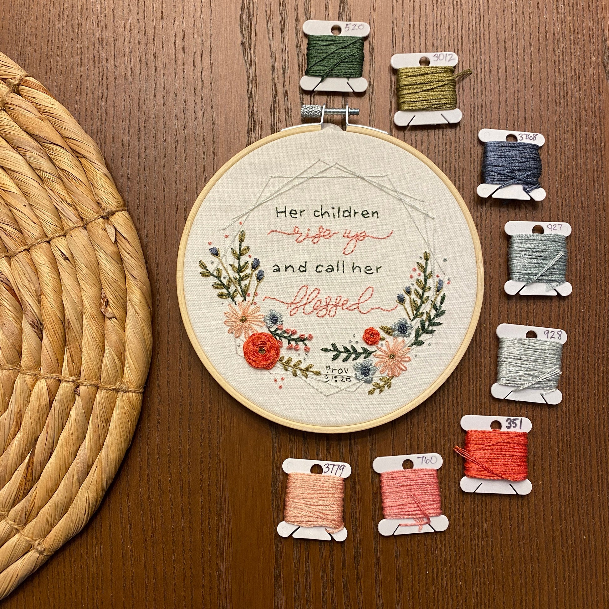 She Is Blessed Digital Embroidery Pattern with Devotional | Proverbs 31